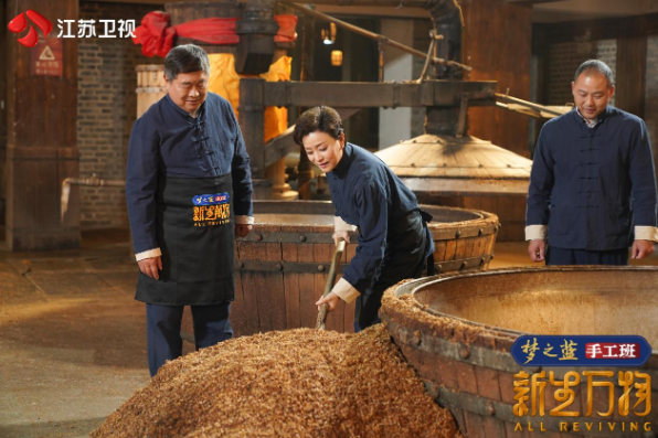 綿柔酒香飄滿城,古意新潮相輝映。2月10日,由“夢之藍·手工班”獨家冠名,江蘇衛視與陽光媒體集團共同出品的大型非遺煥新紀實節目《新生萬物》第六站走進江蘇宿遷探訪洋河酒釀造技藝。發起人楊瀾攜文化老友單霽翔及新銳設計師王成福、胡傳建組成“新生學徒團”,來到酒香四溢的洋河古鎮,學習洋河酒制曲、釀酒、封藏、勾調的四大技藝。